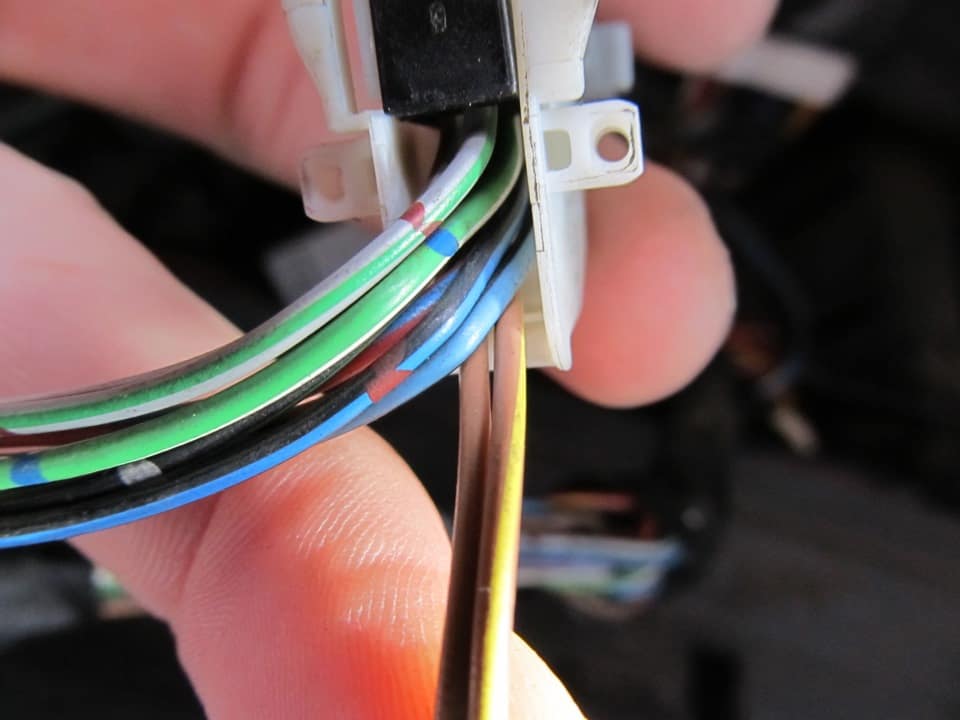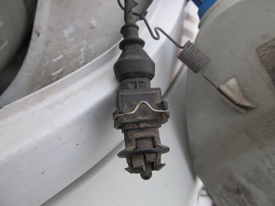Поки знімав — мене збентежила відсутність роз’ємів. Коричневий провід в пін 7 білої фішки в панелі приладів, коричнево-жовтий в пін 6. На сам датчик одягається роз’єм, ніде посередині немає роз’ємів. У моїй білій фішці 6 і 7 пін були порожніми.